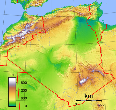 Es el país más extenso de África, con más de dos veces la superficie de Colombia. Mientras el norte está cubierto con bosque y con las características climáticas mediterráneas, y en el este hay grandes llanuras, el sur argelino pertenece al Sahara, el que cubre 86% del territorio.